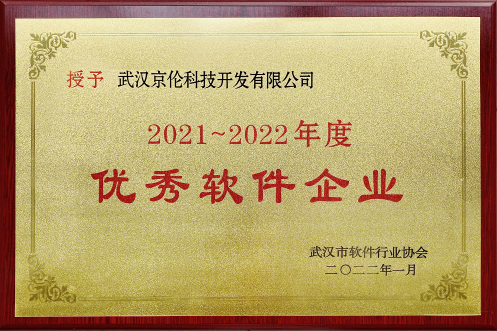 武汉京伦科技开发有限公司经过层层选拔,严格评选,被武汉市软件行业协会授予2021-2022年度“优秀企业”称号。