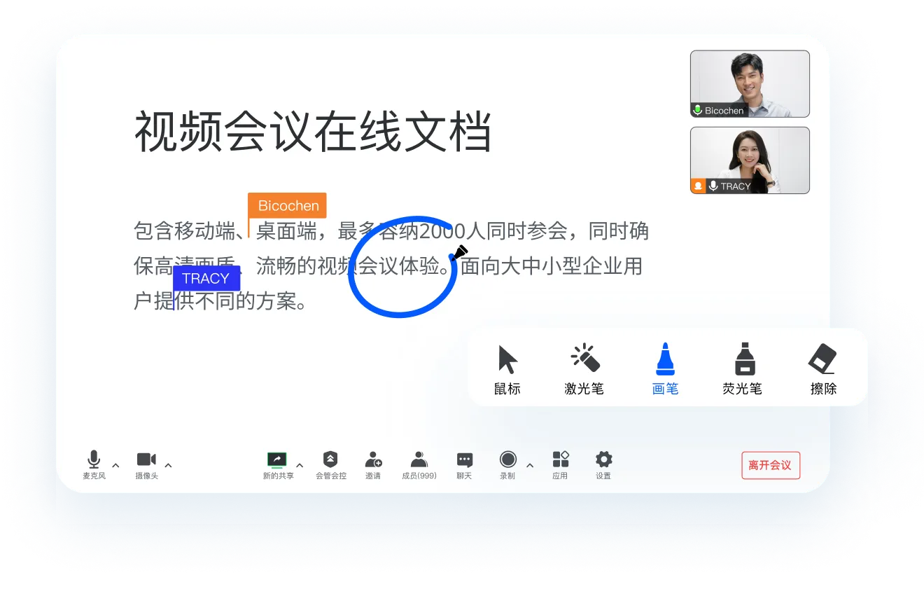 企业级会议安全保障,确保高性能音视频的同时提供丰富的会议协作能力。