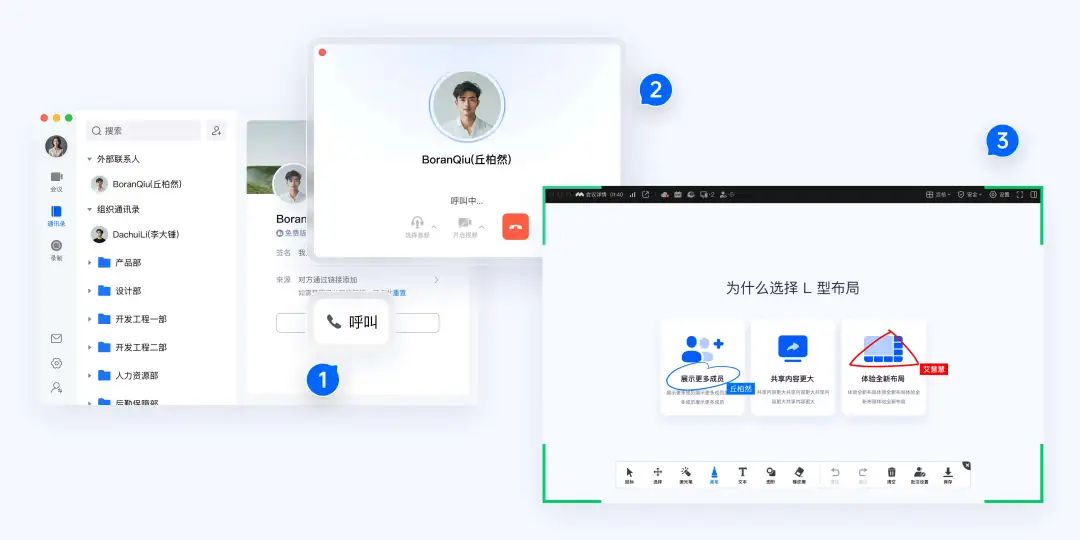 此外,结合共享屏幕、云录制、AI纪要&待办等能力,原地升级为“可视化、能存档、智能化的电话”,让事情聊清楚、聊透彻,后续如若需要卷入更多人,同步云录制即可,无需重新交代背景与进展,帮助企业进一步降本增效。