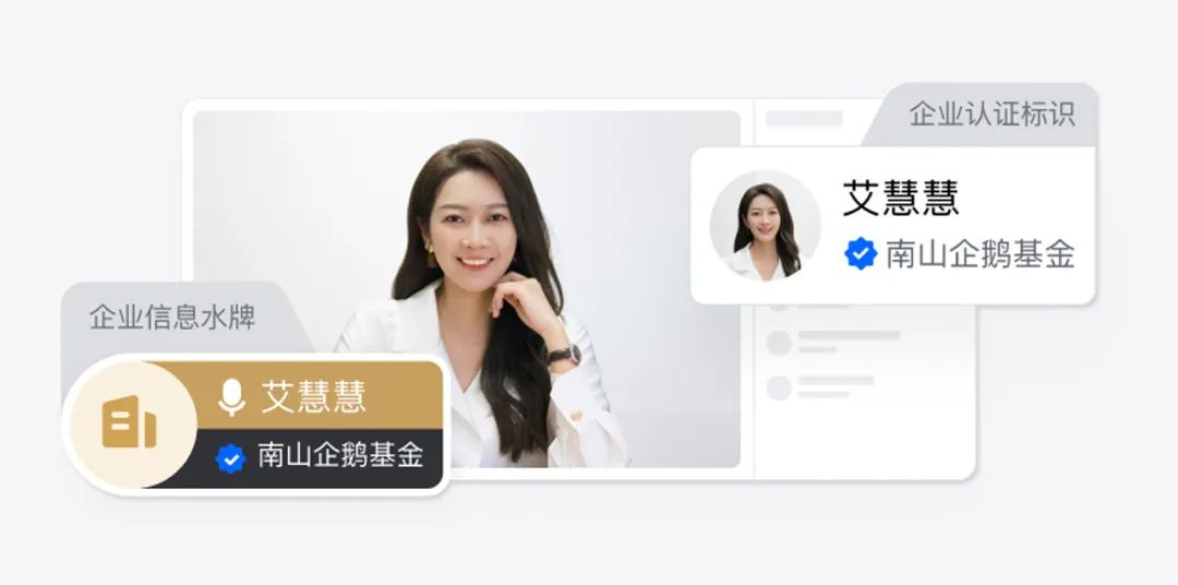 在沟通时,专业版、商业版、企业版用户可以展示在您的个人资料卡、会议水牌中,丰富的样式能够匹配到各种使用场景,打造专属于您的“数字名片”,展示专业形象,提升外部合作伙伴信任感。