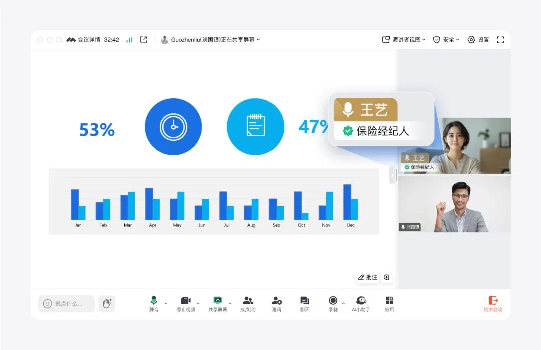 闪闪发光的“名片”,让信任快速建立因为跨市跨省的原因,加上客户有时候也觉得线下见面麻烦,王艺会跟客户在线上聊。“其实我的职业相较是很自由的,我是保险经纪人,线上聊的时候一般都用腾讯会议。因为一边共享屏幕一边讲我的产品,相比于你给客户扔去一个文档要实在、真诚得多。” 她说道。