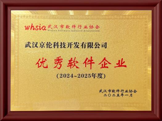 武汉京伦科技开发有限公司经过层层选拔,严格评选,被武汉市软件行业协会授予2024-2025年度“优秀软件企业”称号。